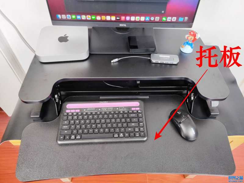 ▲升降台搭配的托板很大,间接扩大了桌面的使用面积,而由于升降台是立体设计的,因此虽然桌面大部分是被升降台“占据”了,但是升降台下方还是可以放一些东西的,而在立体层面则可以放置显示器和常用的设备。
