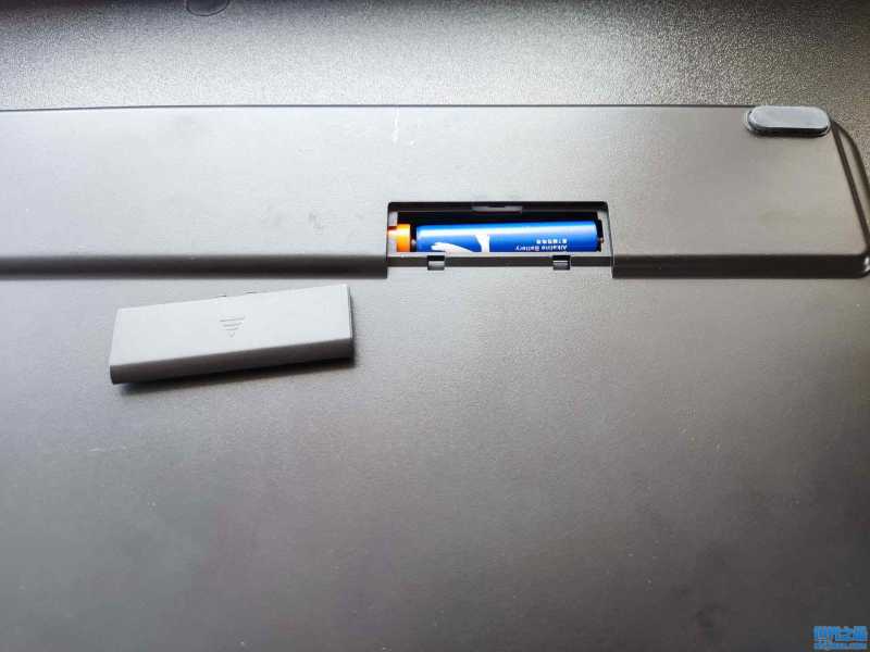 ▲键盘底部有4个椭圆形的黑色防滑硅胶垫,能较好的固定键盘在桌面上。电池舱需放入两颗7号电池。键盘最厚的地方2cm不到,处处体现了它的便携性。