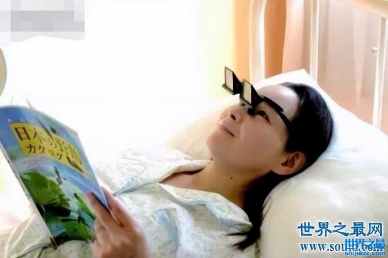 除了趴着玩游戏,人们还喜欢躺着看书。因为举着书手臂会非常累,日本人就发明了这款懒人眼镜。它将三棱镜的一面进行特殊的真空蒸镀处理,通过光线折射原理使物体清晰地映入眼帘。有了它,懒人们就可以躺着看世界了。