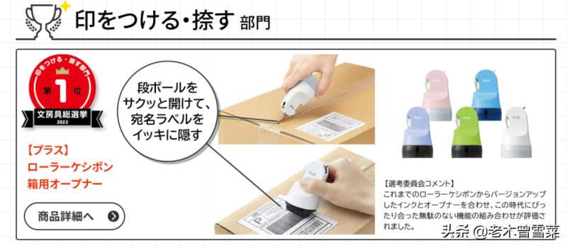 专为日本新兴的网购设计的产品,印章部分可以涂抹在快递单号上,避免丢弃垃圾后个人隐私信息的泄露,而刀头集成在了另一侧,可以拆快递使用。