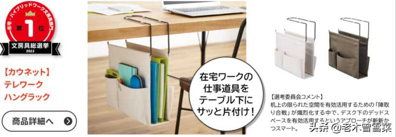 这是一款使得桌面有限空间实现扩大化的桌面收纳包,对于桌面以下的腾空区域实现了绝佳的应用,并且全包的结构设计非常出色,杂物、书本、笔记都能被完美收纳。需要说明的是,这个品牌的评选的赞助商之一,结构很有趣,可以买国内后续的仿制品。