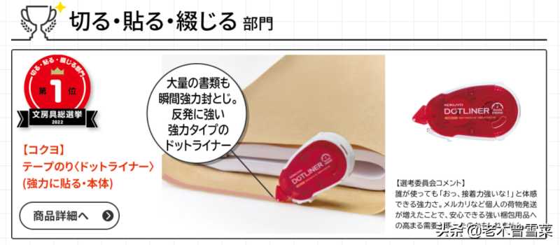 国誉的新款点点胶获得了第一名,相比于经典款,胶带变得更宽,结构上提供了防尘盖,并且粘性出色,使用时既不会弄脏双手,顺滑的结构也不会让胶区和纸张出现皱纹。