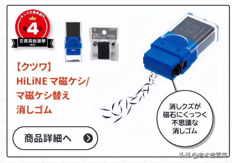 KUTSUWA全新的磁吸橡皮擦,橡皮内加入了金属材质,在另一边放上一款磁铁,擦拭后用磁铁可以快速清理产生的碎屑,并且收纳进碎屑篮中统一清理。