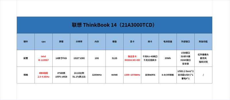 MX450和不少主流显卡一样,实际上也有不同的档次,ThinkBook14 2021使用的是其中的GDDR6“大杯”型号,并非使用GDDR5的低配包版本。