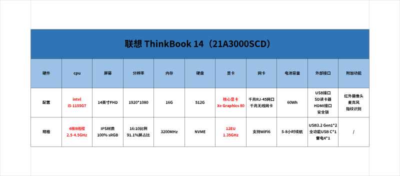 21A3000SCD作为ThinkBook14 2021系列的基础款,配置虽然不如其他两款,但能满足基础办公需求。
