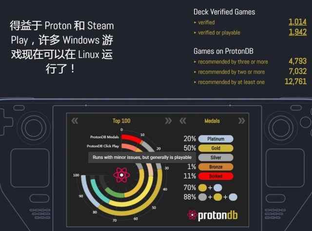 Steam自己的掌机Steam Deck,就运行Linux通过Proton来兼容Windows游戏