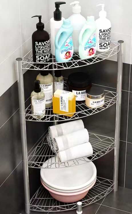 最上层放一些洗浴用品,夹层可以将盆倒置在上面,增加一个这种靠墙壁的落地置物架浴室不再满满当当,空间变得“开阔”而且井井有条。