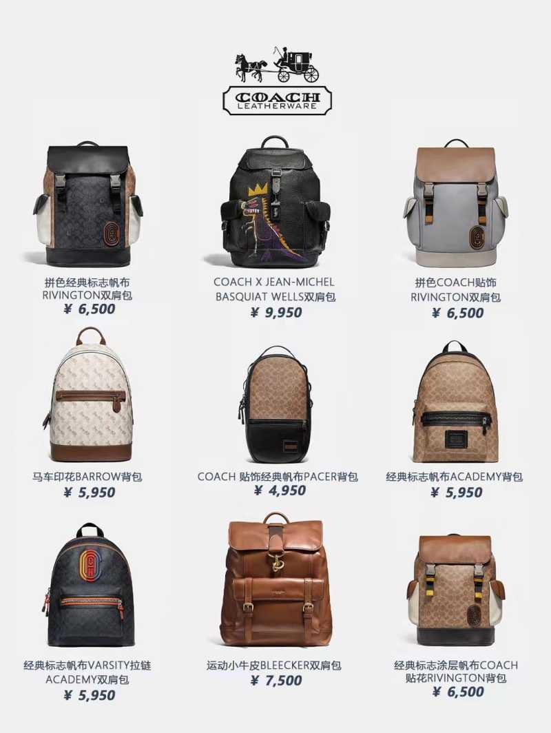 相对于其他的品牌,coach双肩的性价比是最高的。翻盖背包容量大,适合通勤。配备多个内外口袋、一个笔记本电脑隔层以及用于存放书本、水瓶和其他日常所需用品的充足空间。
