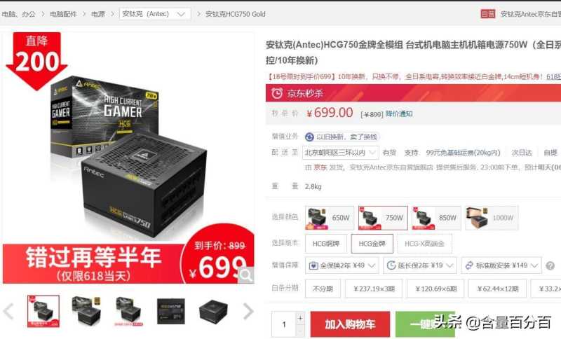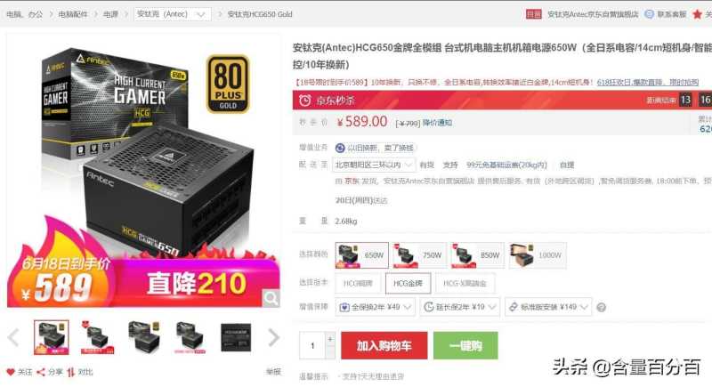 安钛克HCG650/750//850W金牌全模组台式机电脑电源游戏水冷静电源 ¥589 购买此外还有其他不同配件部分进行了不同程度的降价,比如风扇、机箱、水冷、风冷等,从几十元到二百元不等。比如下面这些