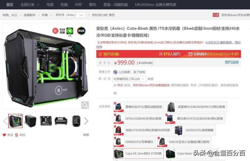 安钛克(Antec)Cube-Ekwb黑色ITX水冷机箱(3mm铝材/240水冷/RGB) ¥999 购买安钛克水星240RGB,支持神光同步,送导热硅脂硅胶/石墨轴承/2.3m扬程/智能温控,原价599,直降140,459可以直接入手
