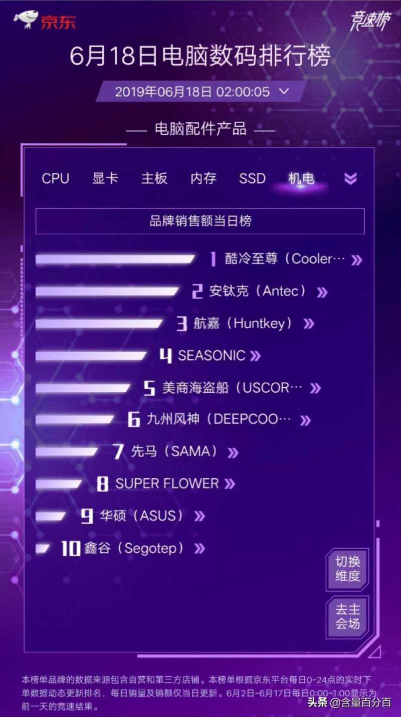 intel/英特尔 i7 9700K/KF处理器 技嘉Z390电脑游戏主板CPU套装i7 8700酷睿盒装Z370主板套装 替8700K ¥2599 购买京东和天猫的电脑数码排行榜已经出来,各个细分项的榜单也都已经出来,有些意外的是前五名的差异非常大,这是代理商刷单嘛?不像,这是0~1点的排名,时间短,两个平台都有防刷单机制。京东的前三名分别是酷冷至尊、安钛克和航嘉,而天猫前三名则是安钛克、酷冷至尊和美商海盗船,可以看到酷冷至尊和安钛克是两家独大,一揽头筹。如果是一个平台排名前三可以理解,双平台排名前三就很意外了,跟什么有关系?产品优惠幅度。