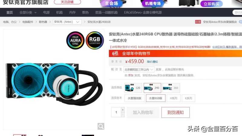 安钛克(Antec)水星240RGB CPU散热器 送导热硅脂硅胶/石墨轴承/2.3m扬程/智能温控/电脑主机箱显卡一体式水冷 ¥459 购买不难看出,安钛克排名第一、第二理由很充分,这种直接而不需要什么优惠券的玩法才是我们用户最为需要的,这才是会用户的最大优惠,最烦那种优惠券还要各种抢、往往被一些职业抢券党非法牟利的玩法,耽误时间、浪费心情,天猫、京东总以为找一些清华、北大博士研究一些什么复杂的玩法来拉动更多人参与,至于实际获利的人群哪些,呵呵呵,who knows?