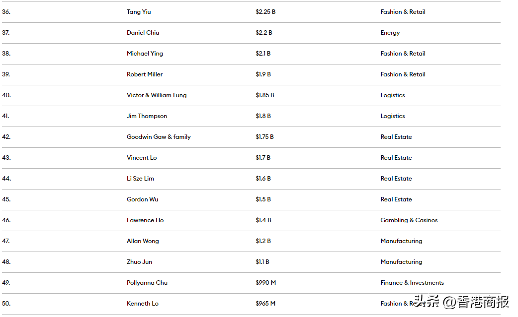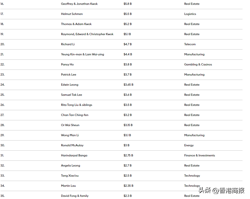2023年福布斯中国香港富豪榜TOP50(完整榜单)↓↓↓