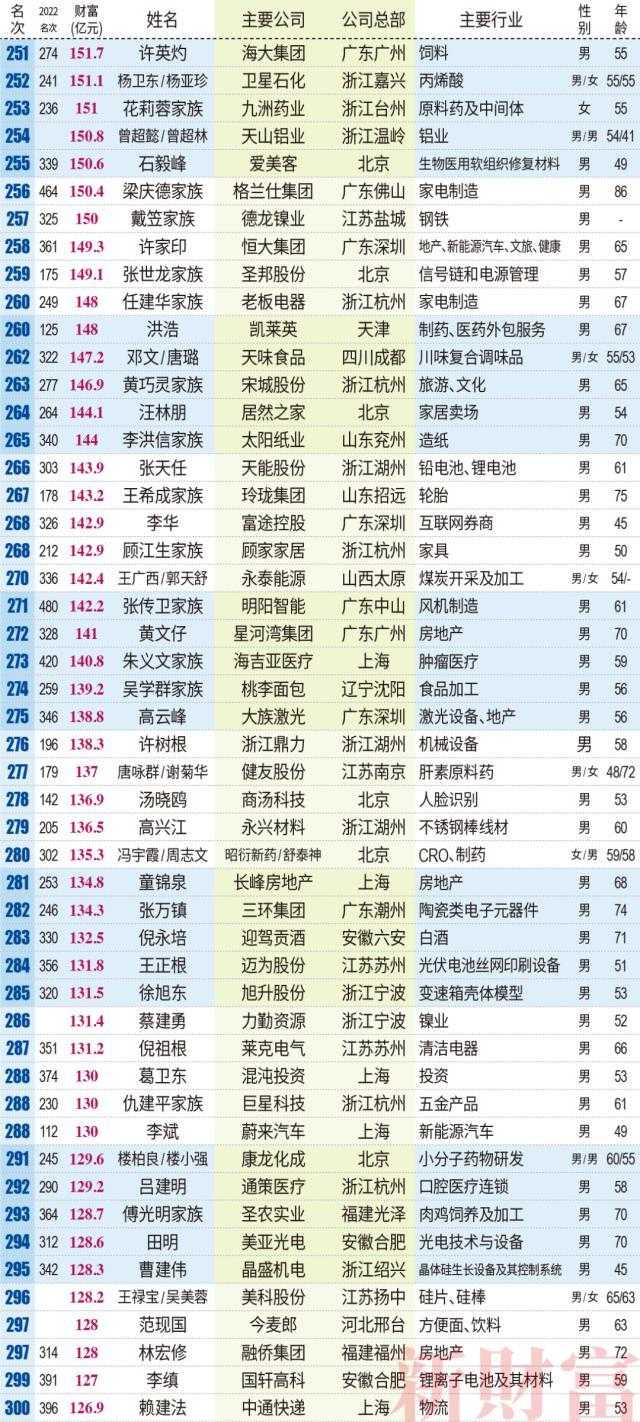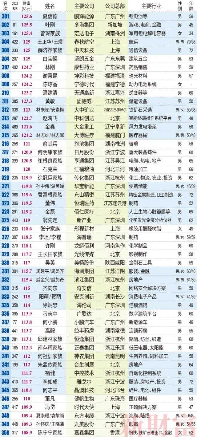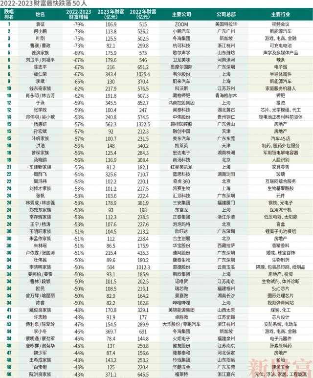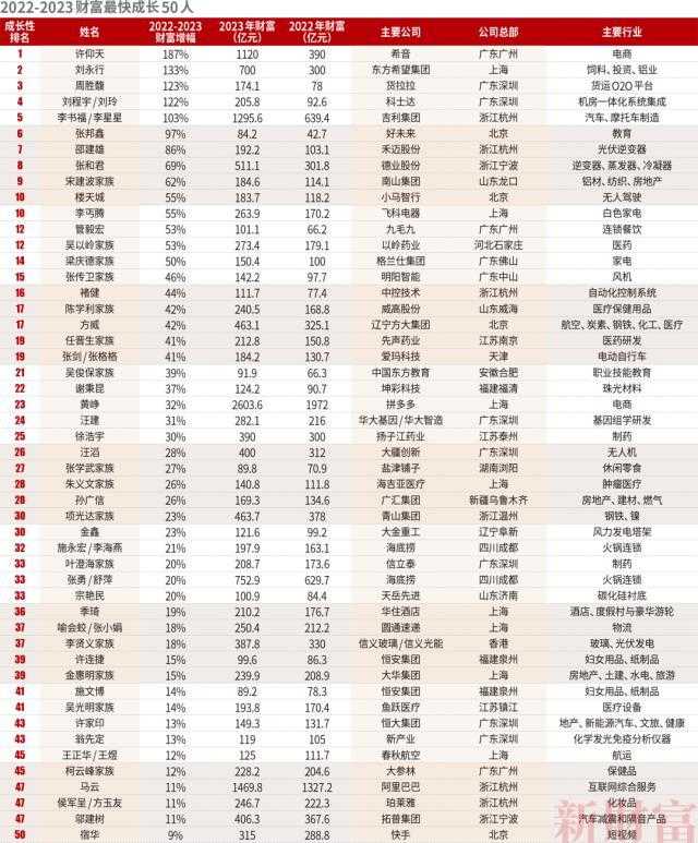 2023新财富500富人:钟睒睒三夺首富,马云重回前十,王传福排名第11