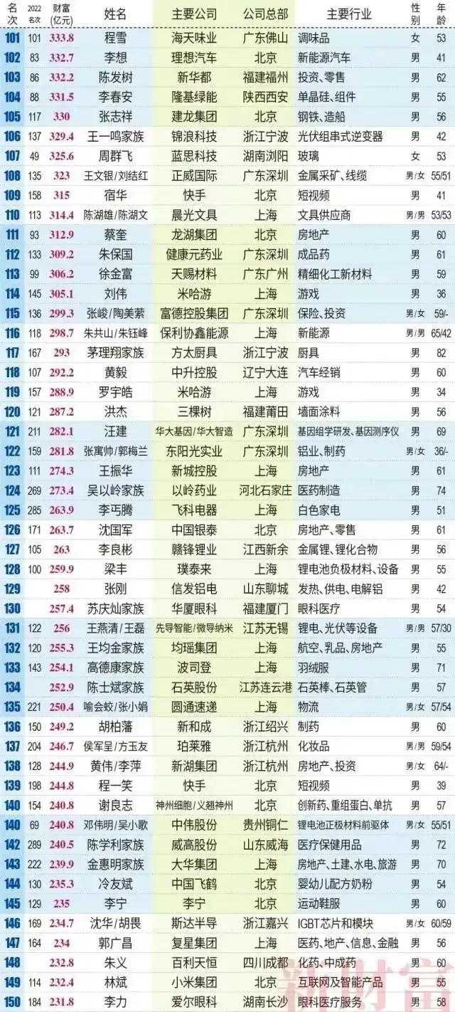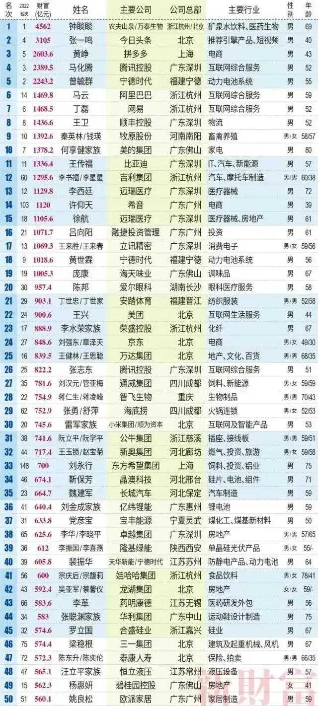 - 胡润全球富豪榜出炉!张一鸣成为中国首富