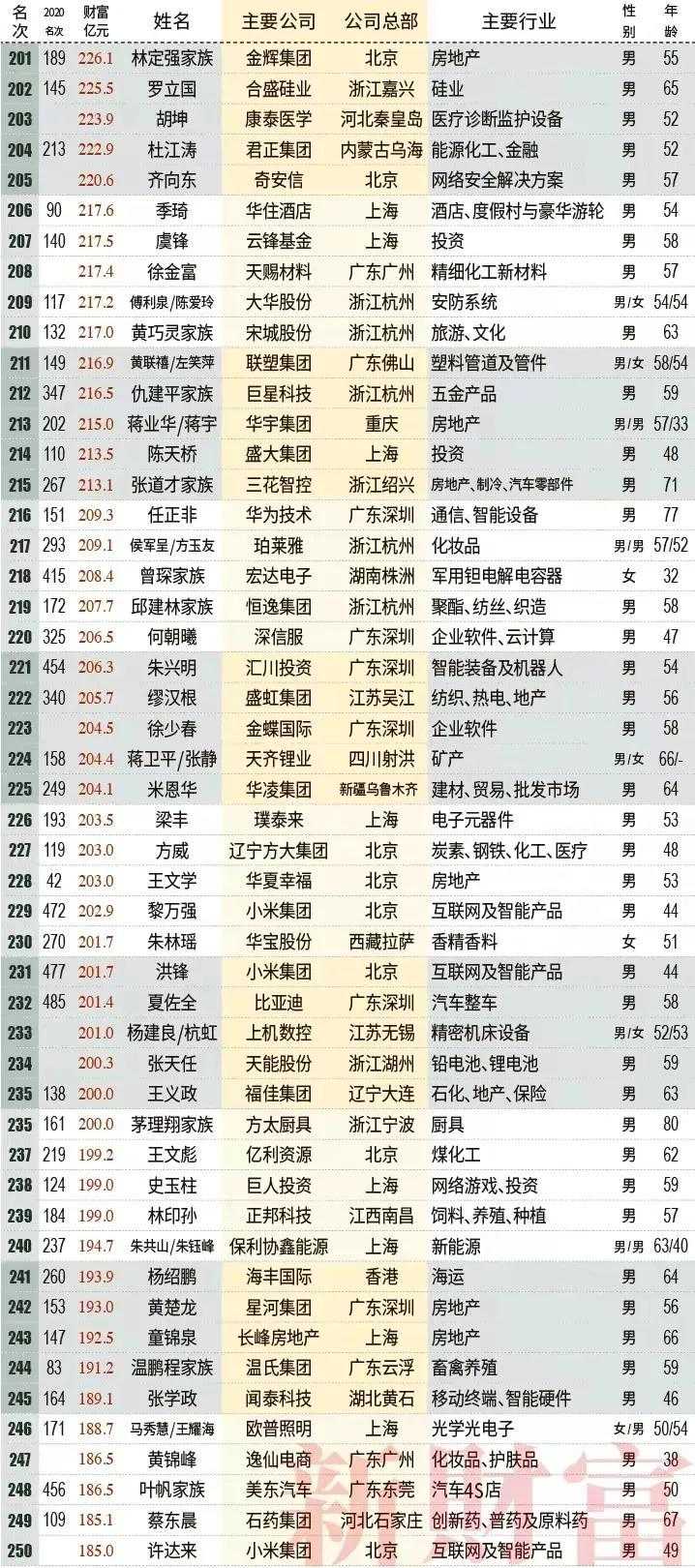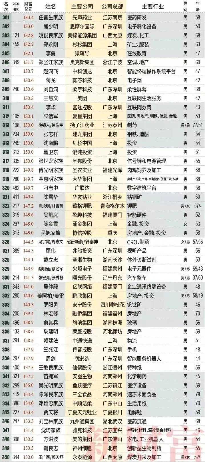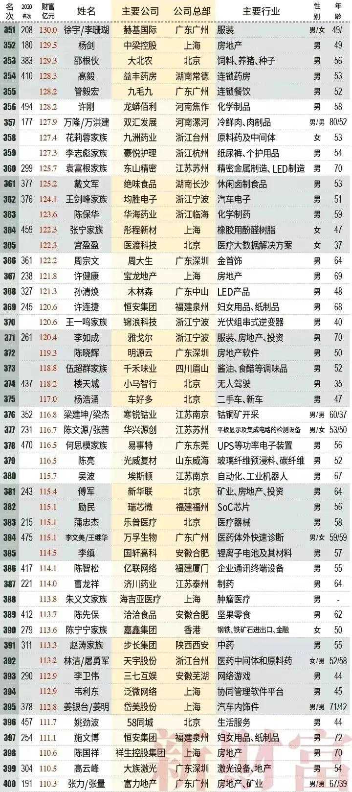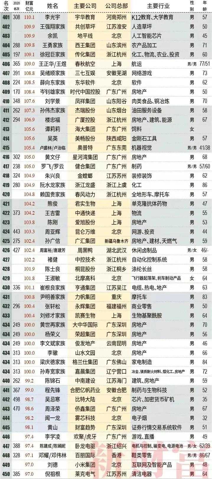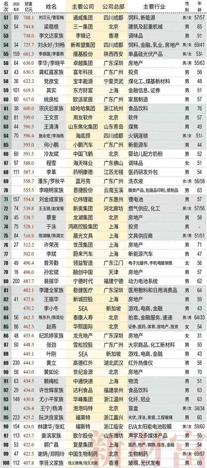 - 福布斯发布中国富豪榜,马云回归榜首!(附前100名单)