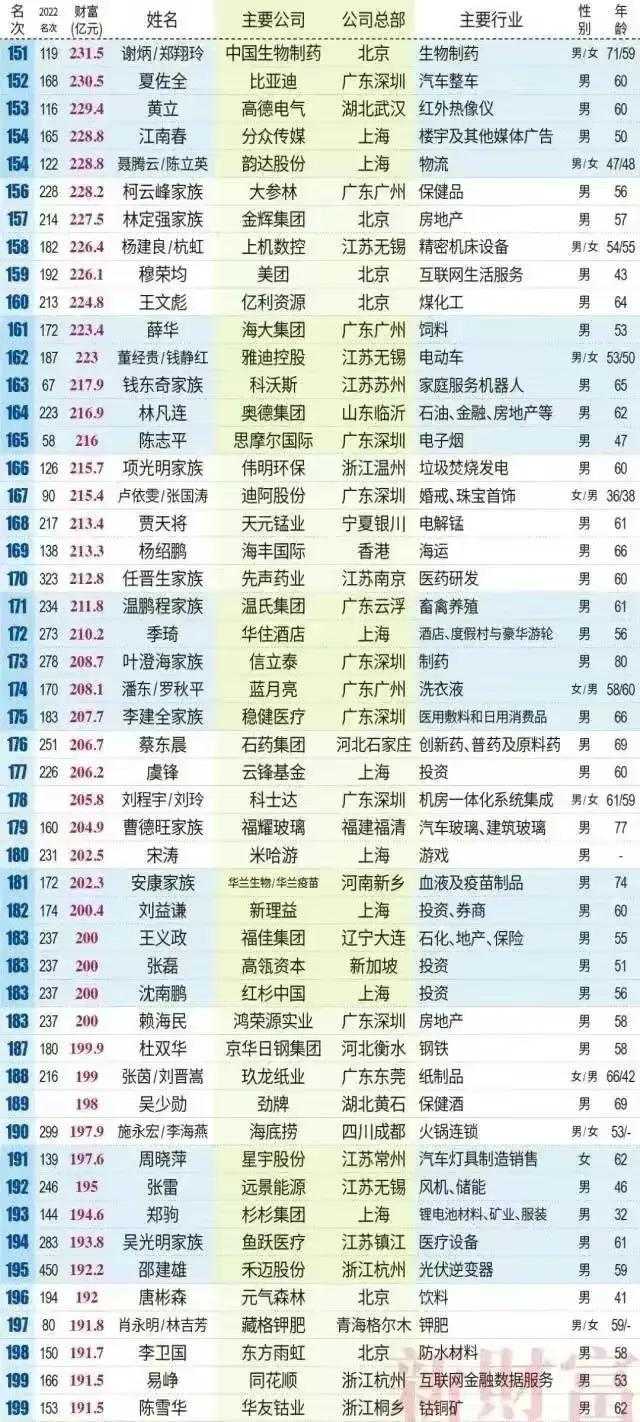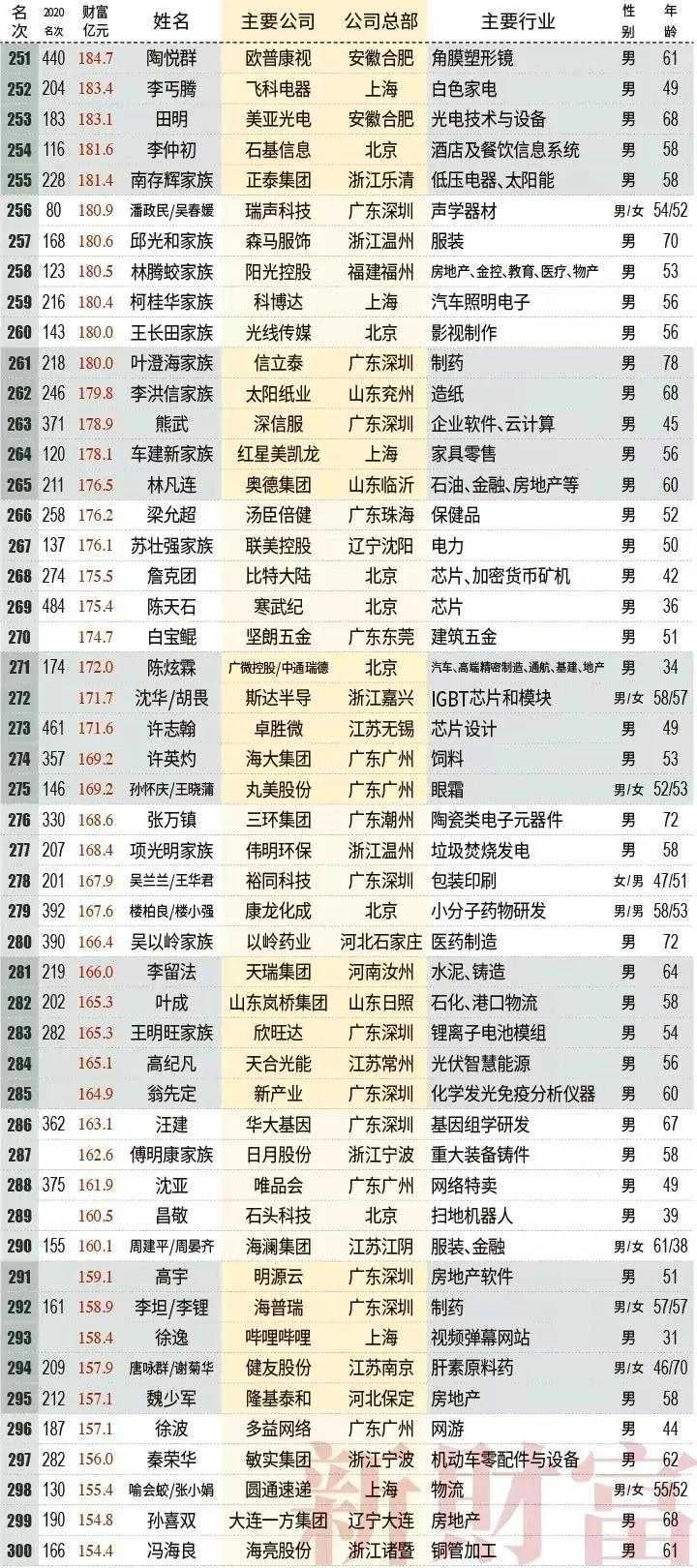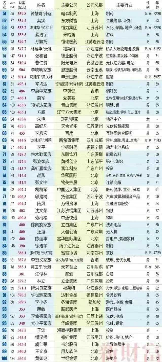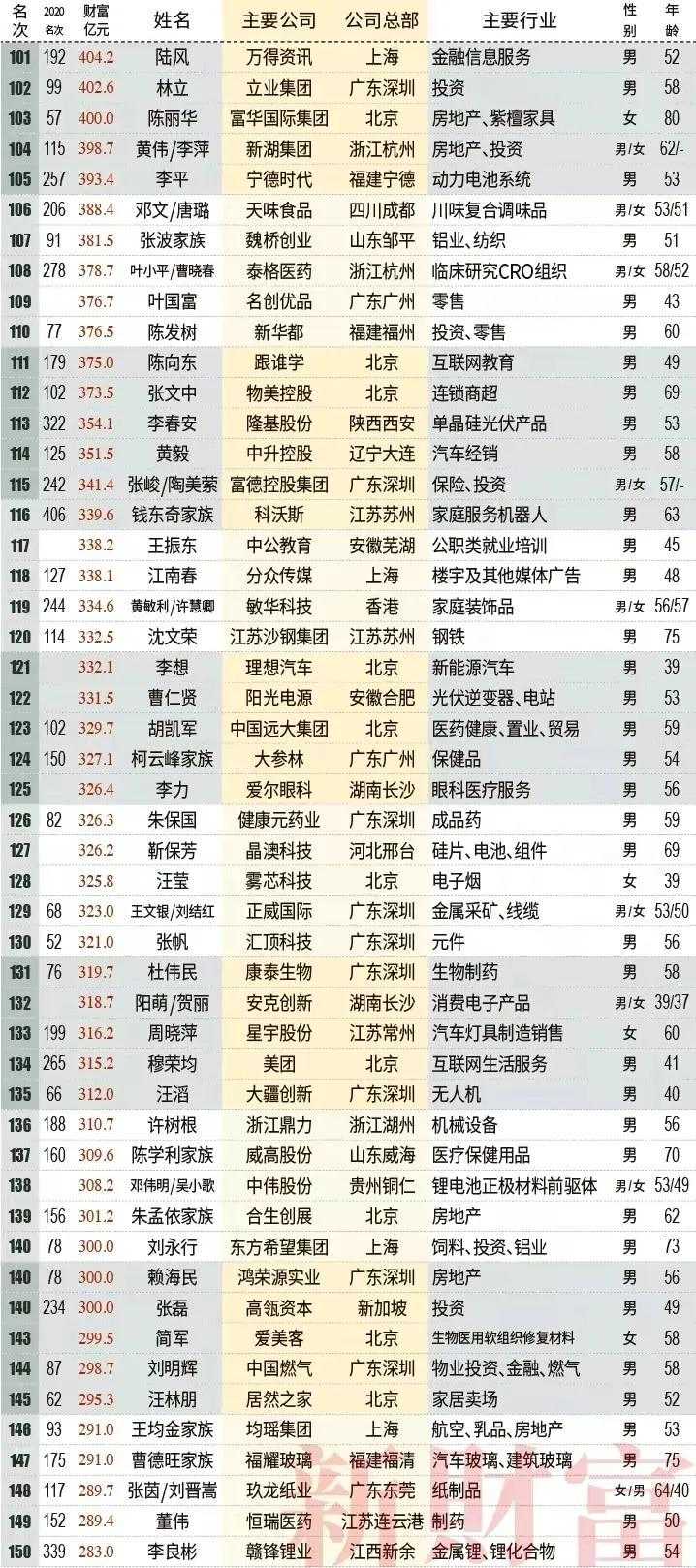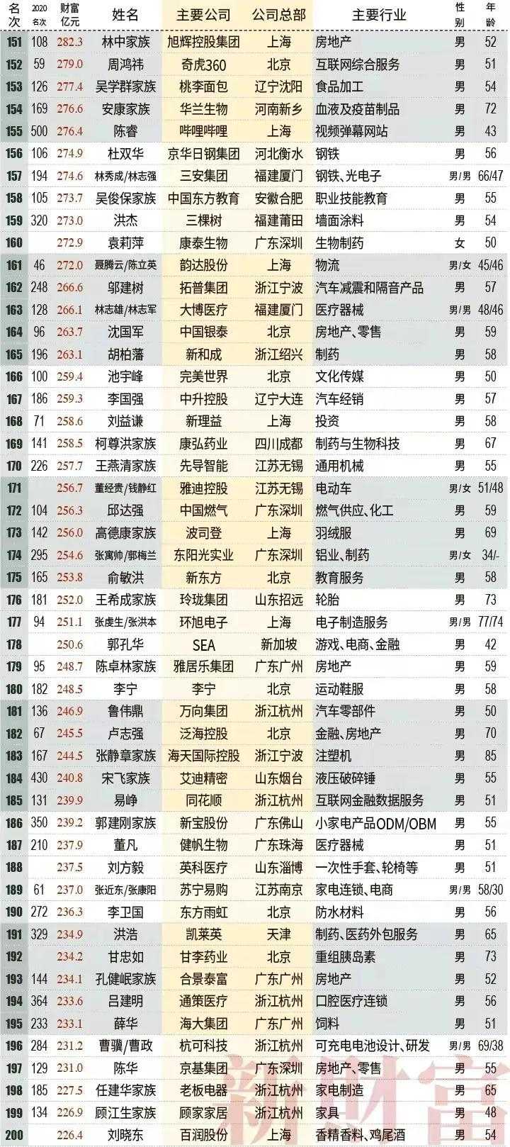 - 福布斯发布中国富豪榜,马云回归榜首!(附前100名单)