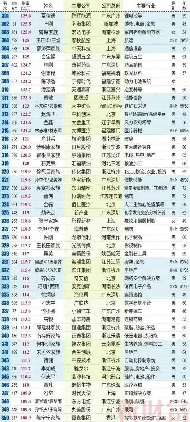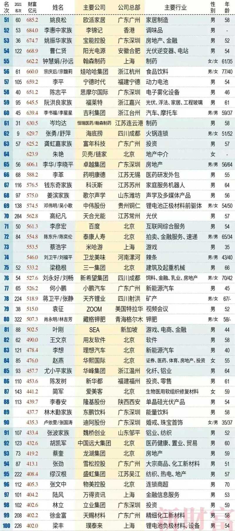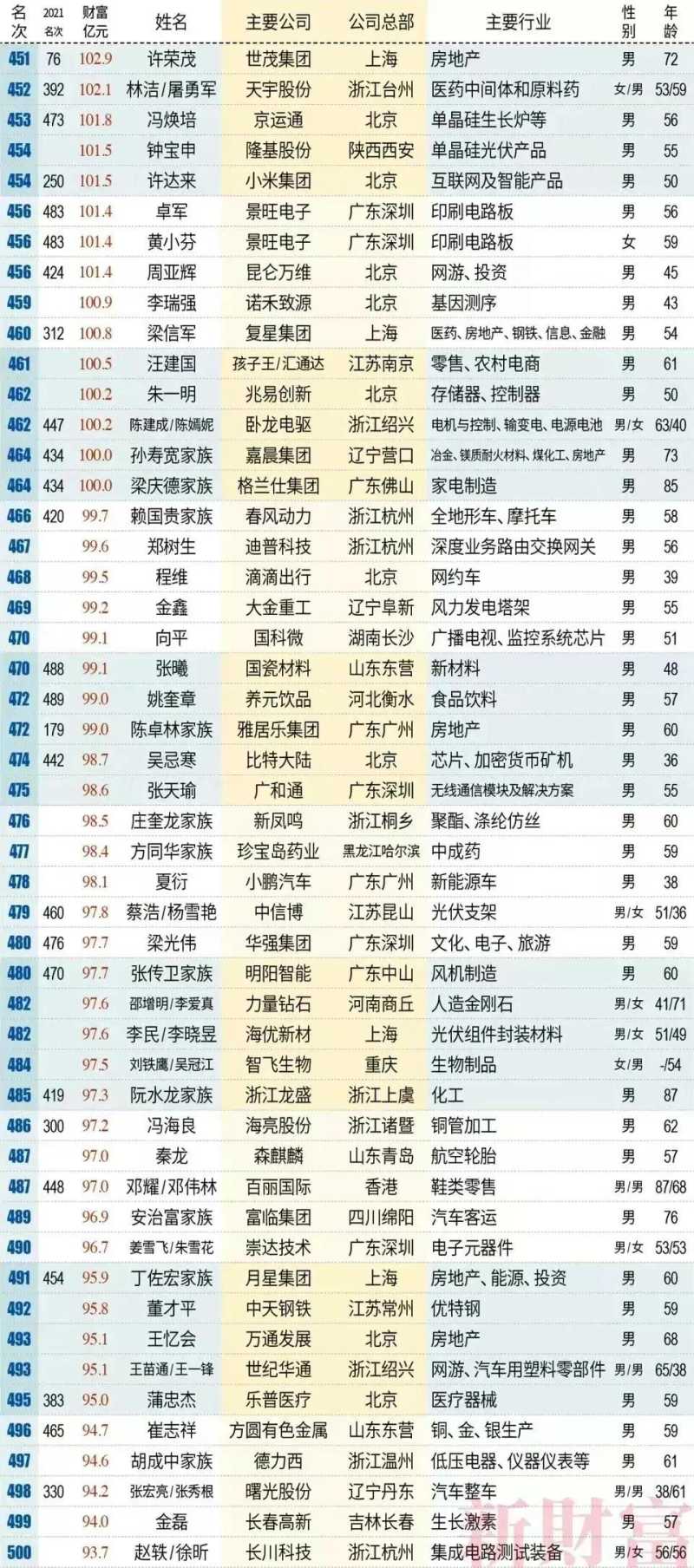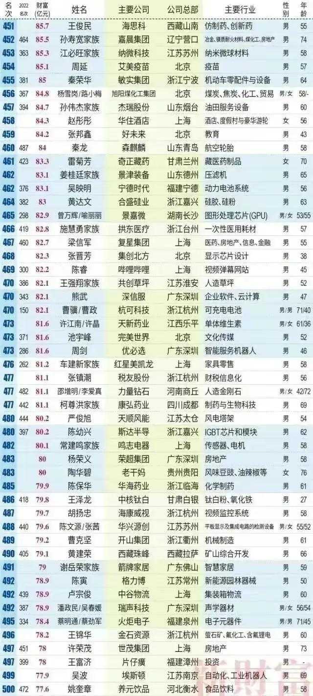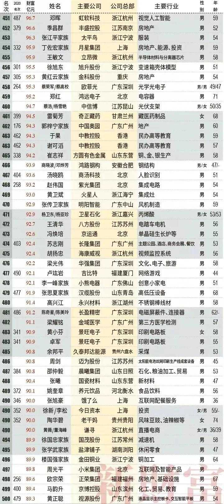 中国富豪榜2021年到2023年前500排行,快来看看有哪些你认识的富豪吧!#中国富人有多富# #历届中国首富榜#