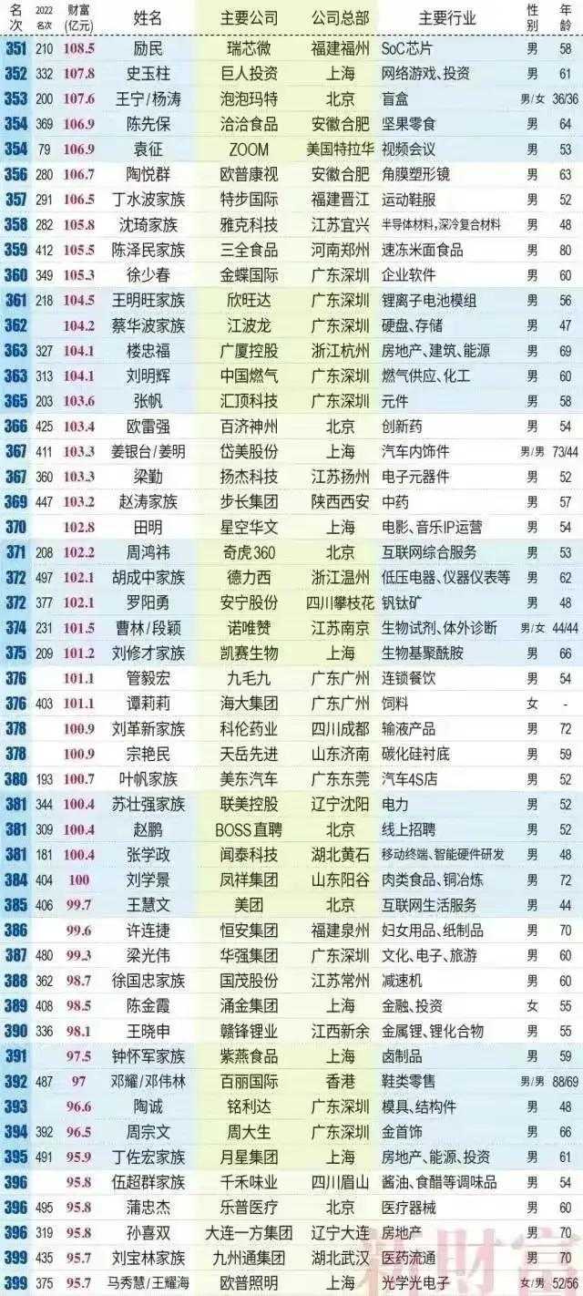 - 胡润全球富豪榜出炉!张一鸣成为中国首富
