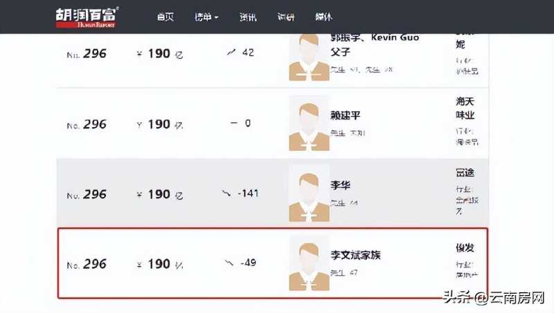 2022年胡润百富榜出炉,俊发李文斌家族排云南第三