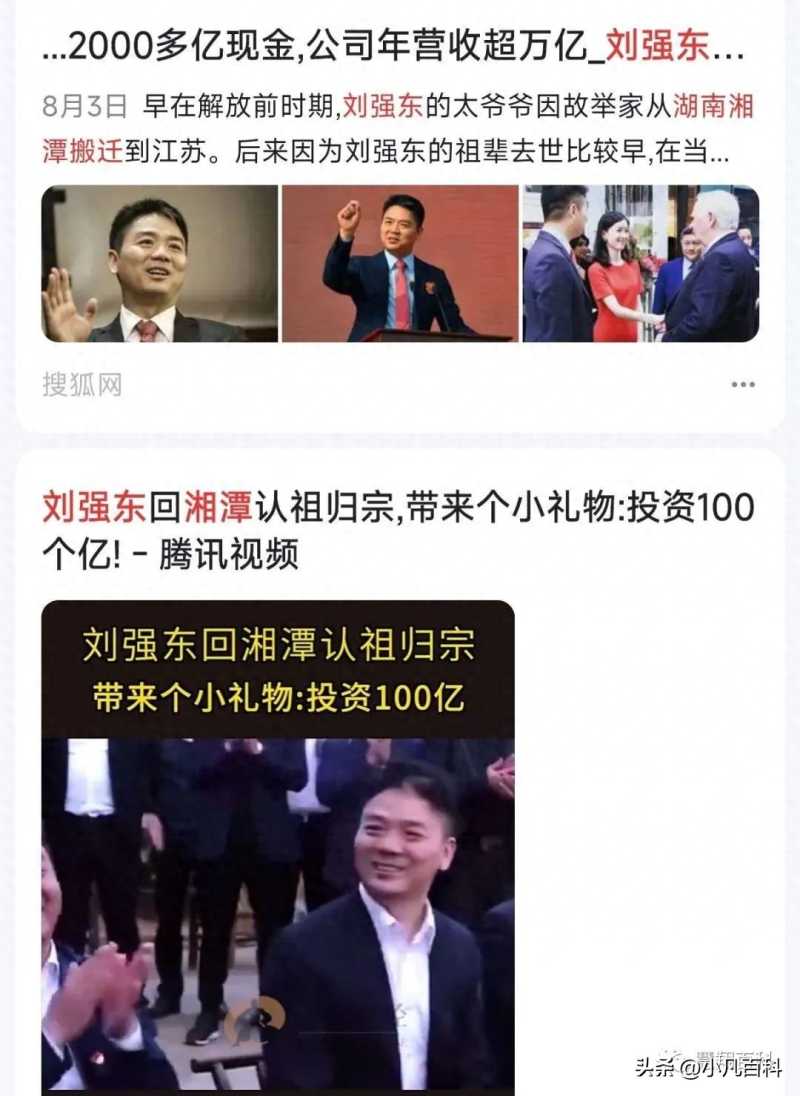 据说,是在解放前,刘强东的太爷爷因故举家搬迁至江苏,刘强东还曾回湘潭认祖归宗,并带去投资100亿的小礼物。