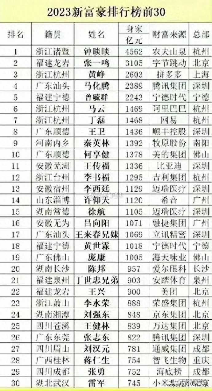 因为这个排行榜标明了2023新富豪排行榜前30个人的籍贯。让人没想到的是,竟没有一人来自北京和上海。