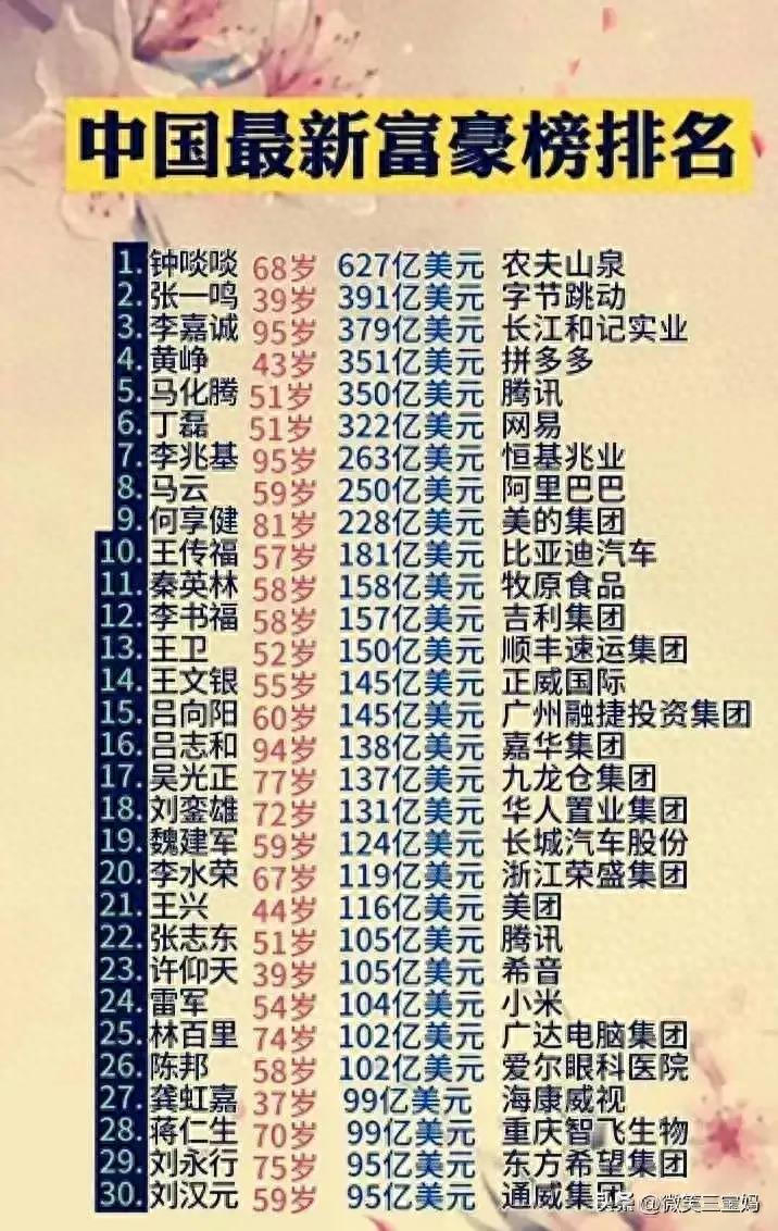 中国最新富豪榜排名,终于有人整理出来了,内容仅供参考。