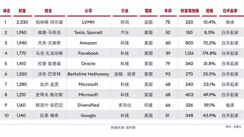- 福布斯公布7月全球十大富豪:第二换人,马斯克成“最大输家”