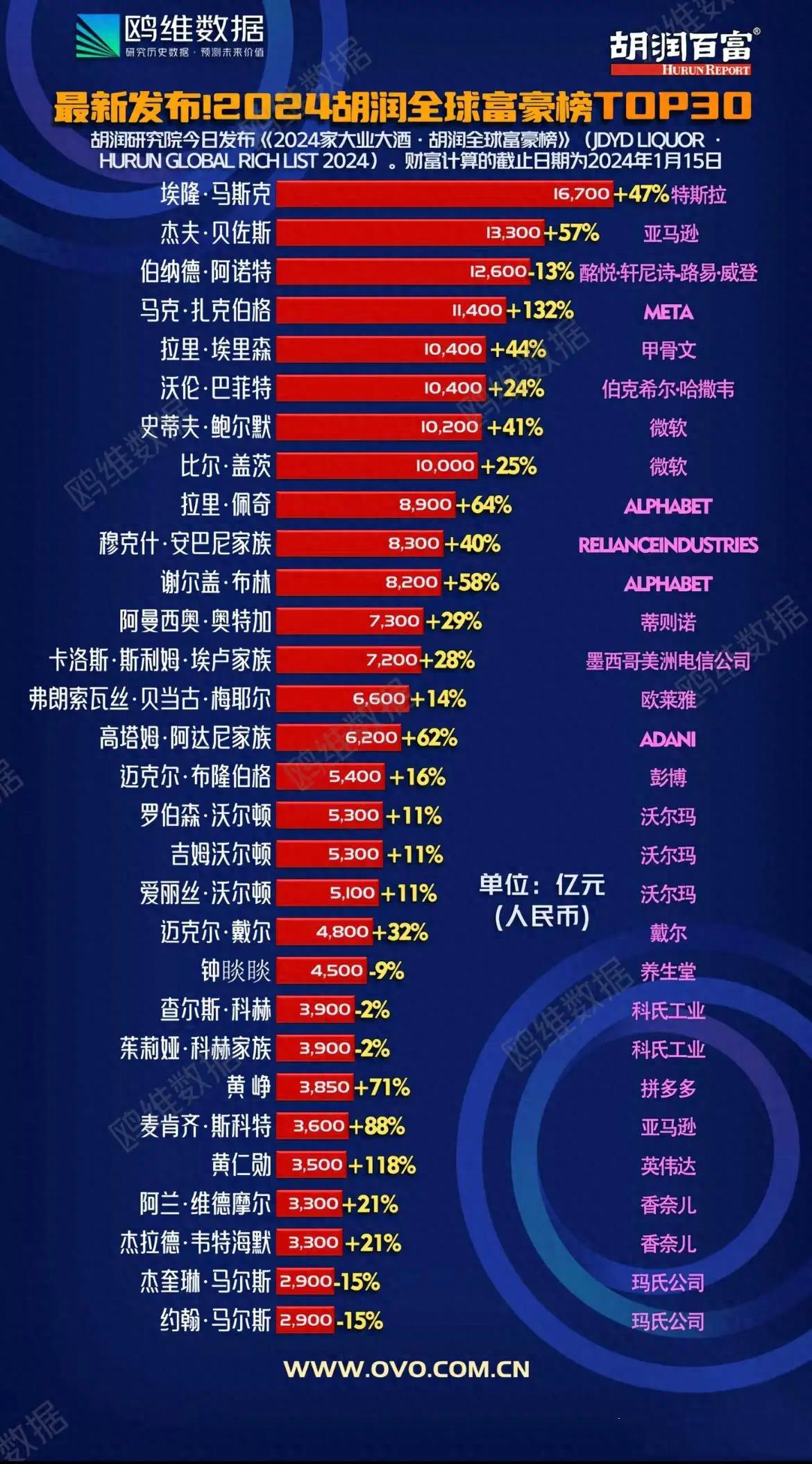 2024胡润富豪榜更新:马斯克重回首富,中国前三是他们