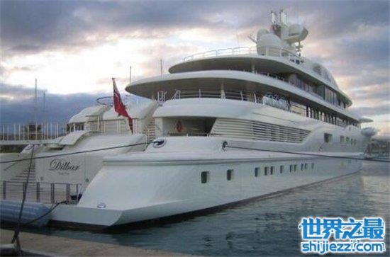 Dilbar诞生于2008年,市场价格2.63亿美元。这艘游艇总长度为360英尺,高为50英里,很大。里面有着超大直升机草坪,还有各种大型娱乐场所,房间也很大,光是客人居住的客房都能容纳多达20人,除了贵,没有什么缺点。