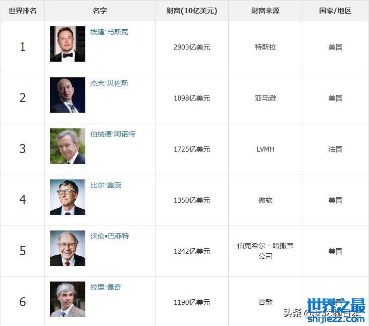 - 全球最有钱十大富豪!比尔盖茨仅排第十,中国无人入选