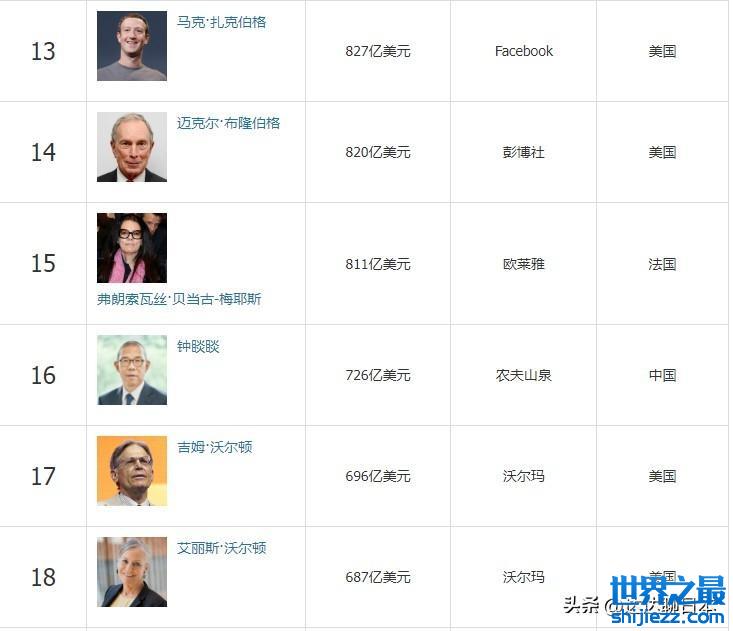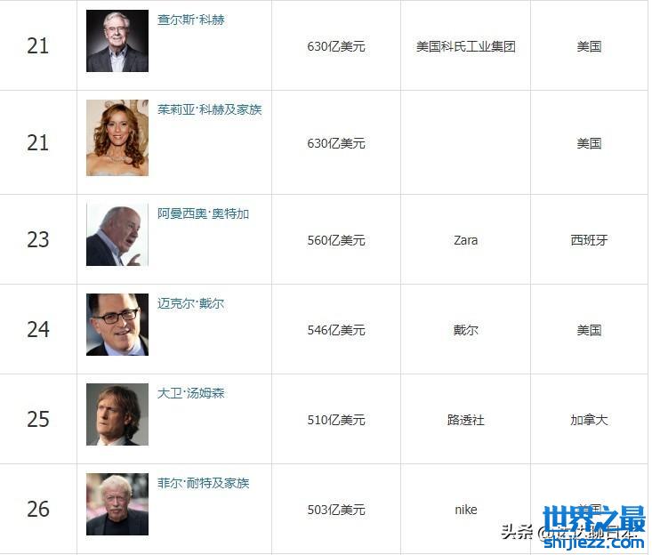 2022年4月5日,根据福布斯杂志发布2022年版的世界富豪排行榜(World's Billionaires)。