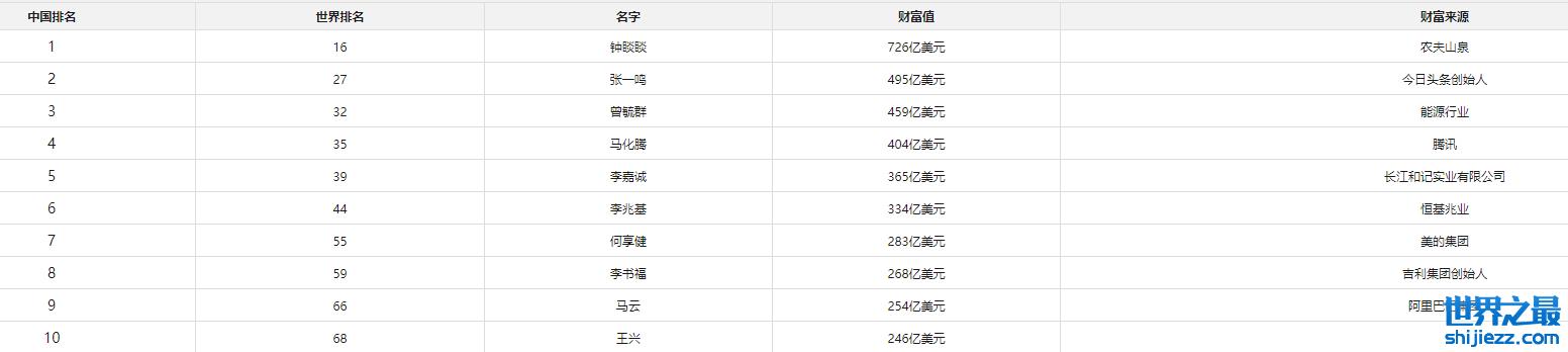 - 中国富豪榜前20名最新排名