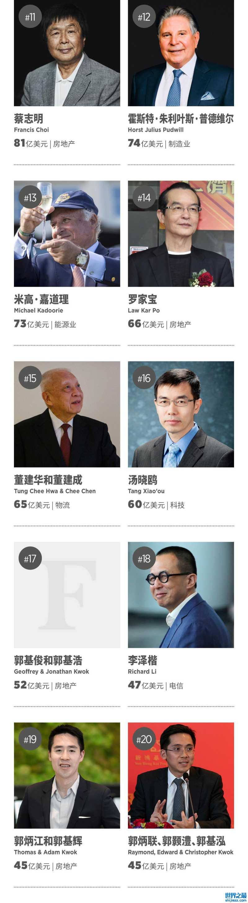 - 中国富豪榜前20名最新排名