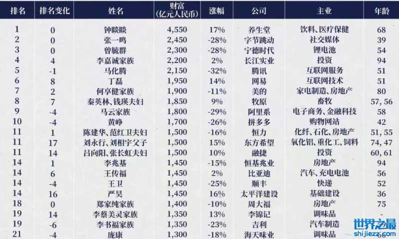 - 中国富豪榜前20名最新排名
