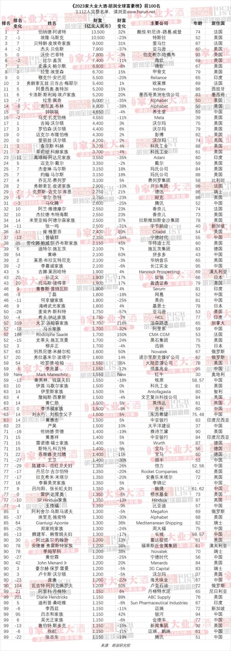 - 胡润全球富豪榜出炉!张一鸣成为中国首富