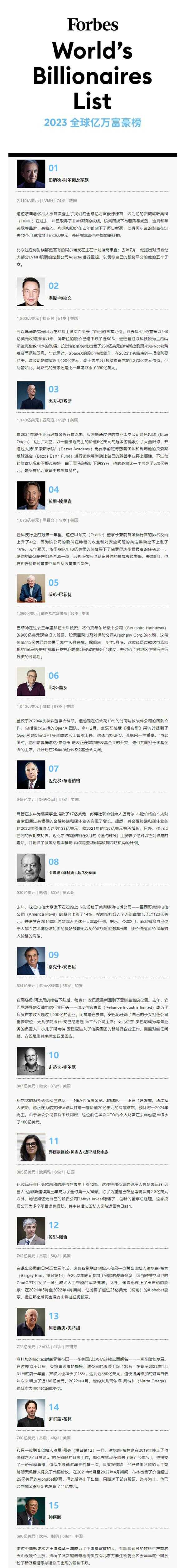 - 福布斯公布7月全球十大富豪:第二换人,马斯克成“最大输家”