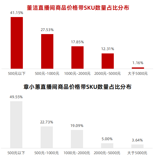 从选品来说,高客单是小红书直播独特的模式。根据果集数据,董洁直播间商品2000元-5000元档位商品占比较高,其用户画像中18-34 岁用户占比超六成,核心用户群为新中产,为更具消费力的高净值人群。