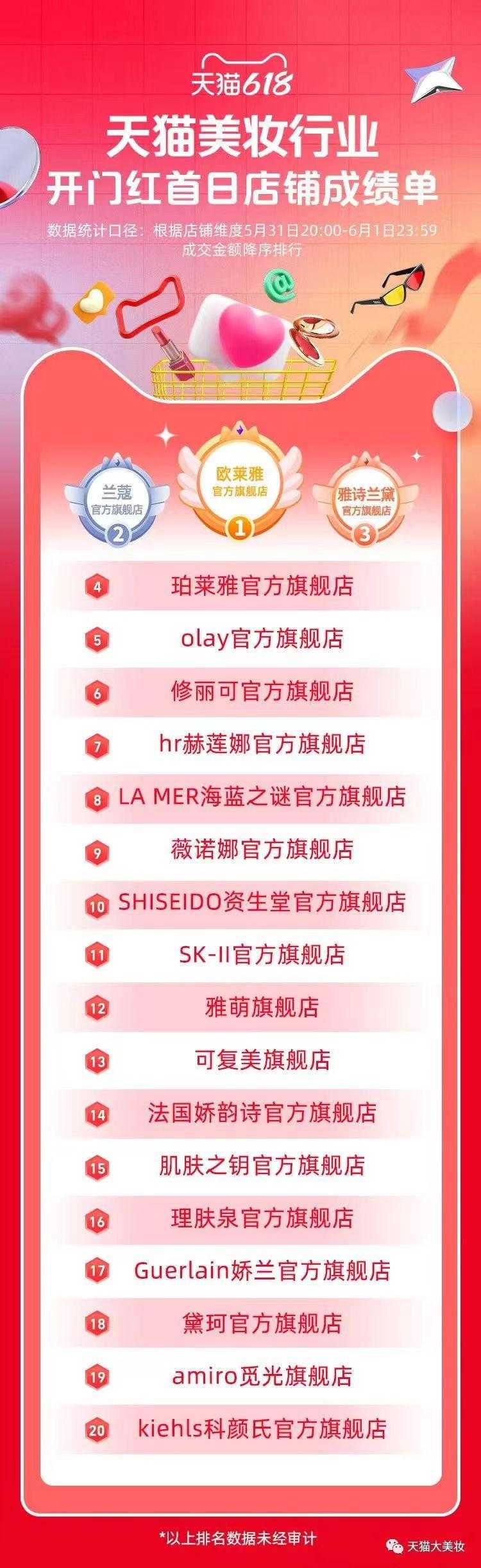 2023天猫618“开门红”美妆品牌销售排行榜出炉