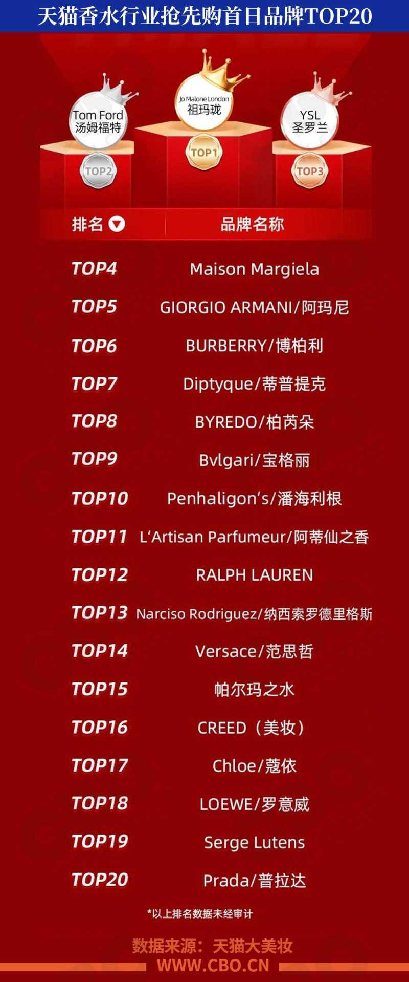 祖玛珑、汤姆福特、圣罗兰分列香水榜单前三席。整体上,外资品牌霸榜香水榜单,国货无一入榜。
