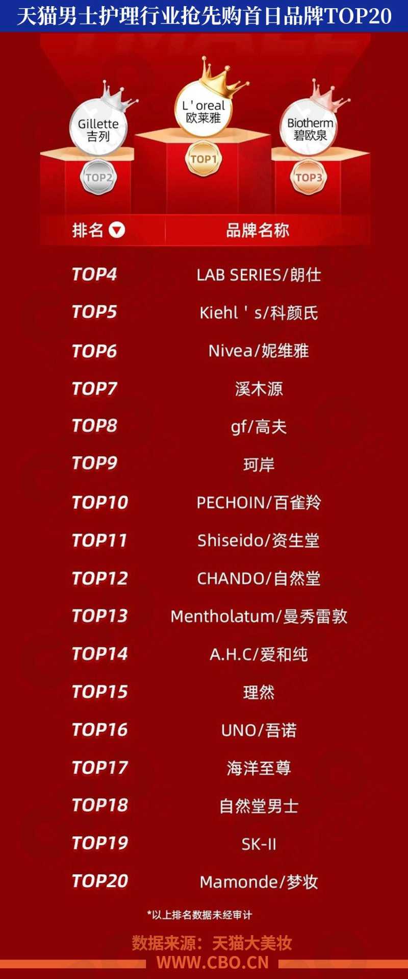 对比其他品类的榜单,男士品类,高端品牌和大众品牌平分秋色,既有SK-II、科颜氏、碧欧泉、资生堂,也能看到朗仕、曼秀雷敦和百雀羚、自然堂男士。