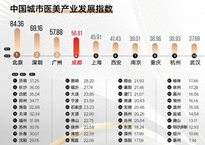 全国首个城市医美产业发展指数正式发布,北京、深圳、广州位居前三,成都表现亮眼,超过上海,排名第四。