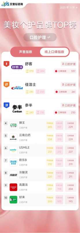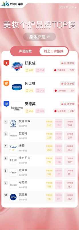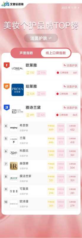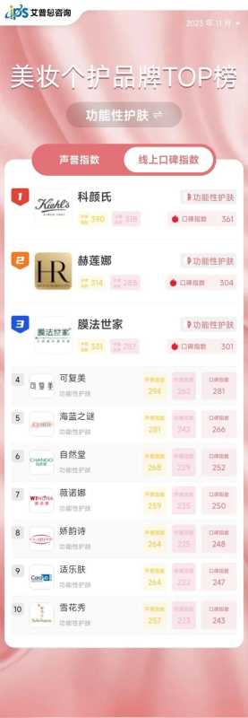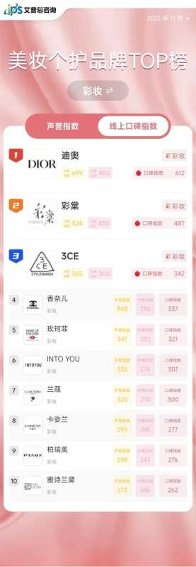 - 最新!线上美妆TOP10榜出炉