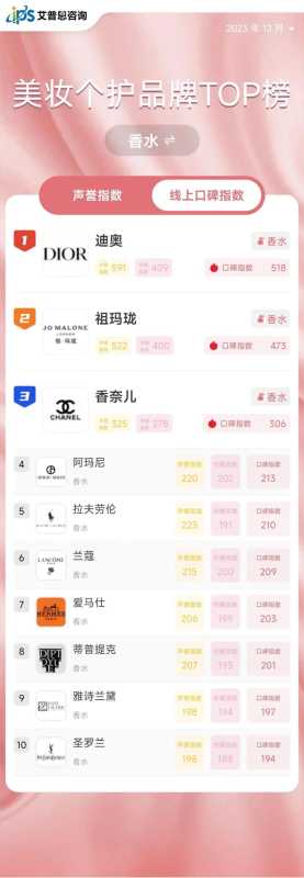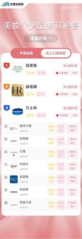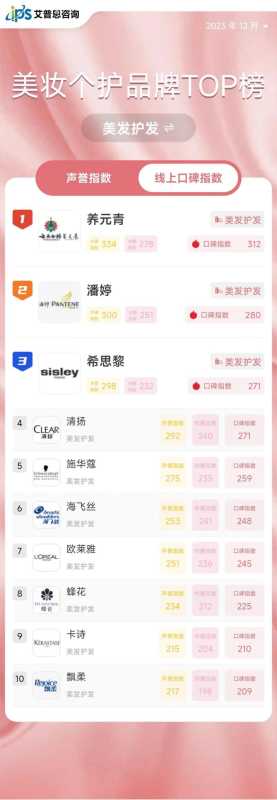 - 最新!线上美妆TOP10榜出炉
