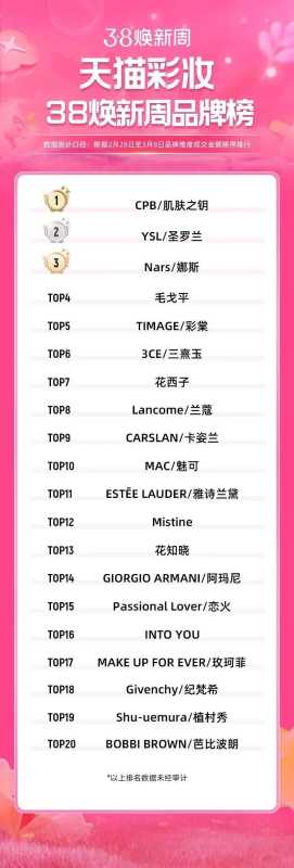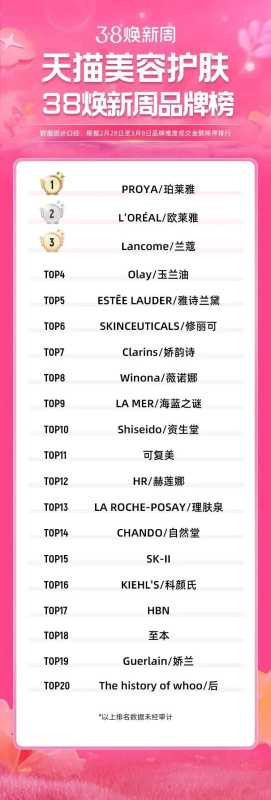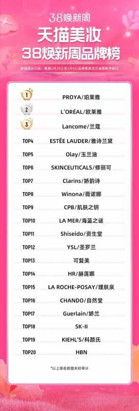天猫美妆“3·8节”榜单出炉
