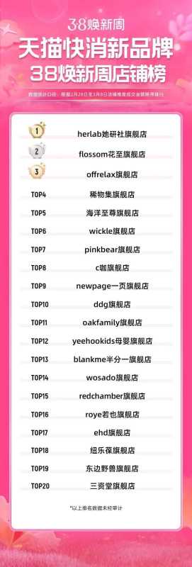 今日(3月12日),《天猫大美妆》公众号发布天猫快消品牌“3·8节”全周期榜单。榜单显示,珀莱雅拿下美妆类目TOP1,同时,国货品牌里,薇诺娜、可复美、自然堂、HBN顺利进入TOP20行列。