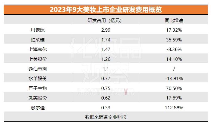 从9大国货美妆上市企业的研发费用可以看出,国货美妆正加大投入,以期强化科研这一核心竞争力。