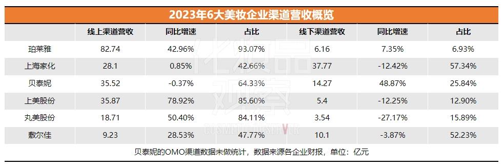 在公开渠道营收的6大国货美妆上市企业里,仅珀莱雅、贝泰妮等少数企业在线下实现增长。