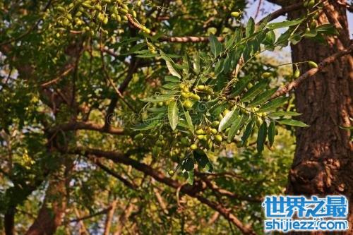 印度楝树是生长环境特别恶劣的,这种树经过长时间的生长,会开出花朵,这种花朵有着特别香的味道,它的树皮、树叶、果实都可以制作成药,有止痛作用,还可以驱赶蚊虫,防止蚊虫叮咬,用它来洗脸可以杀掉脸上的细菌,从而达到美容的作用。