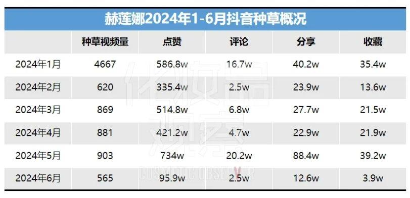 以赫莲娜近半年抖音种草节奏来看,它基本是围绕大促进行布局,且整体动作会前置。比如2月情人节大促前的一个月,种草量和曝光量明显更大。618大促之前的两个月,种草量也会比6月高出1.5倍左右。
